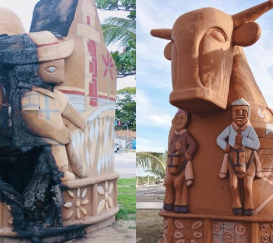 Vândalos depredam escultura Boi-Bumbá, patrimônio cultural do Estado