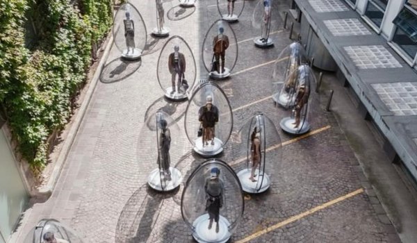 Quem abriu a temporada foi a Diesel, comandada pelo Designer belga, Glenn Martens (o mesmo nome por trás da Maison Margiela). Em vez do tradicional catwalk, ele colocou 55 modelos dentro de cápsulas transparentes em formato de ovo, espalhadas pela cidade. Sim, uma verdadeira caça aos ovos futurista e nada convencional, rs. Cada cápsula trazia um look da coleção de verão 2026, e o público podia acompanhar tudo de pertinho, de graça e ao ar livre.