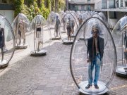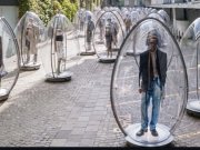 Quem abriu a temporada foi a Diesel, comandada pelo Designer belga, Glenn Martens (o mesmo nome por trás da Maison Margiela). Em vez do tradicional catwalk, ele colocou 55 modelos dentro de cápsulas transparentes em formato de ovo, espalhadas pela cidade. Sim, uma verdadeira caça aos ovos futurista e nada convencional, rs. Cada cápsula trazia um look da coleção de verão 2026, e o público podia acompanhar tudo de pertinho, de graça e ao ar livre.