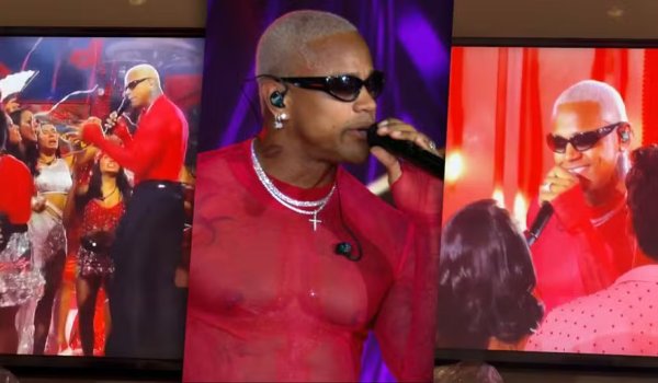 Durante seu show na casa do BBB 26, Leo Santana aproveitou para comemorar os cincos anos de aniversário de casamento com Lore Improta:
