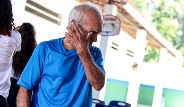 Professor há quase 30 anos na rede pública de Maceió, seu Erivaldo se emocionou ao contar um pouco de sua história. - Mariel Matias/Ascom Semed