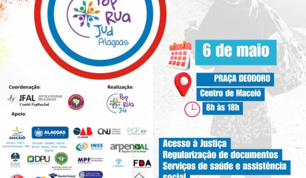 A Secretaria Municipal de Desenvolvimento Social, Primeira Infância e Segurança Alimentar (Semdes) participará, na próxima terça-feira (6), do 2º Mutirão da Política Nacional de Atenção às Pessoas em Situação de Rua e suas interseccionalidades (PopRuaJud), programa instituído pelo Conselho Nacional de Justiça (CNJ) e promovido pela Justiça Federal de Alagoas em parceria com a Prefeitura de Maceió e outras entidades e instituições que oferecem serviços à população.