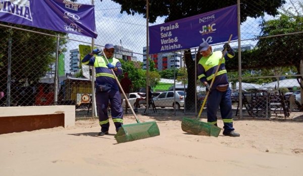 Neste domingo (12), a Autarquia Municipal de Desenvolvimento Sustentável e Limpeza Urbana (Alurb) começou a intensificar os serviços de limpeza em quadras de areia da capital alagoana.