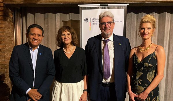O secretário de Estado de Relações Federativas e Internacionais, Júlio Cezar, representou o Governo de Alagoas na celebração do Dia da Unidade Alemã, ocorrida na quarta-feira (15), no Recife. O evento foi promovido pelo Consulado-Geral da Alemanha no Nordeste, a convite do cônsul-geral Johannes Bloos e da consulesa Beatrice Wöhler, e contou com a presença da embaixadora da Alemanha no Brasil, Bettina Cadenbach.