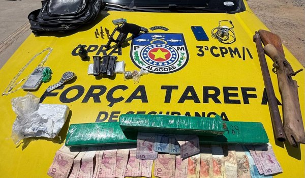 Na ação comandada pela 3ª Companhia de Polícia Militar Independente (CPM/I)A, foram apreendidos um revólver calibre 38 com oito munições intactas e uma espingarda artesanal; três carregadores calibre 380; uma balança de precisão de pequeno porte, além de uma quantidade de maconha, cocaína e crack, e a quantia de R$ 394,00.