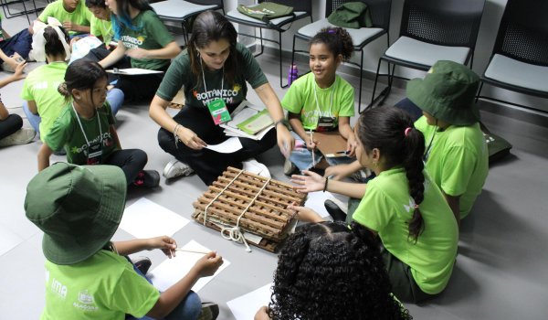 Na atividade da semana passada, as crianças aprenderam como fazer a coleta de plantas, flores e folhas, e como armazená-los corretamente. Mas o aprendizado não parou por aí. Agora, com esse material em mãos, os participantes puderam ver de perto as estruturas das plantas e replicar de forma lúdica as características de cada uma.