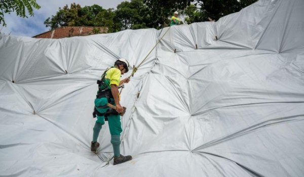 As lonas são aplicadas em locais com maior suscetibilidade a deslizamento de terra, contribuindo para o escoamento da água da chuva e a redução da infiltração no solo. A operação é realizada em parceria com a Autarquia de Desenvolvimento Sustentável e Limpeza Urbana (Alurb), que disponibiliza uma equipe especializadas para a colocação do material.
