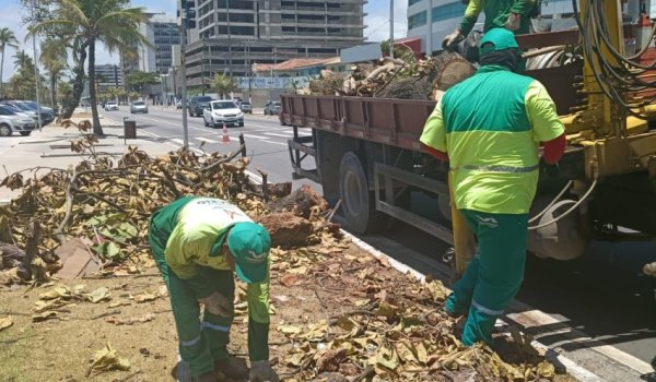 Partes de tronco e galhos da árvore foram retirados da Praia da Avenida. Foto: Tháchyna Lorena (estagiária)/Ascom Alurb
