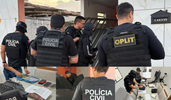 Coordenada pelo diretor da Dinpol, delegado Thales Araújo, e pela delegada-adjunta Bárbara Porto, a operação também incluiu sete mandados de busca em estabelecimentos comerciais cujos nomes fazem referência a facções criminosas.