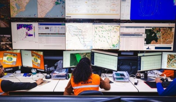 Monitoramento das chuvas em Maceió é realizado em tempo real no Centro Integrado de Monitoramento e Alerta da Defesa Civil de Maceió.