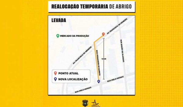 A medida faz parte das intervenções relacionadas à obra do Mercado da Produção, na região da Levada, executada pela Prefeitura de Maceió. O objetivo é garantir que, mesmo durante o período de obras, o atendimento aos usuários do transporte público seja mantido de forma organizada e segura.