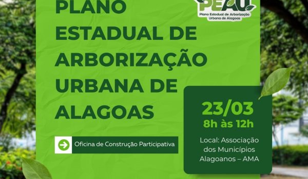 A Secretaria de Estado do Meio Ambiente e dos Recursos Hídricos de Alagoas inicia, na segunda-feira (23), no auditório da Associação dos Municípios Alagoanos (AMA), em Maceió, às 8h, a primeira oficina presencial do Plano Estadual de Arborização Urbana, reunindo representantes do Governo do Estado, universidades, Ministério Público e gestores municipais, com participação das secretarias de Meio Ambiente e Saúde, para apresentação do diagnóstico inicial, análise das vulnerabilidades ambientais e definição das bases técnicas que irão orientar a construção de cidades mais resilientes, saudáveis e preparadas para os desafios climáticos.