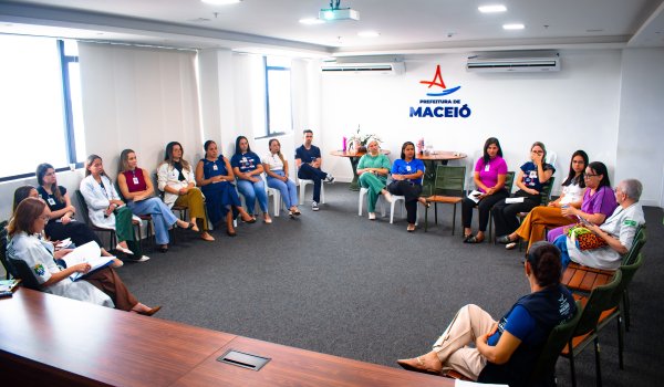 Profissionais do HC participam de encontro com a Vigilância Epidemiológica para fortalecer assistência a gestantes e bebês. Foto: David Silas/ Ascom Maceió Saúde