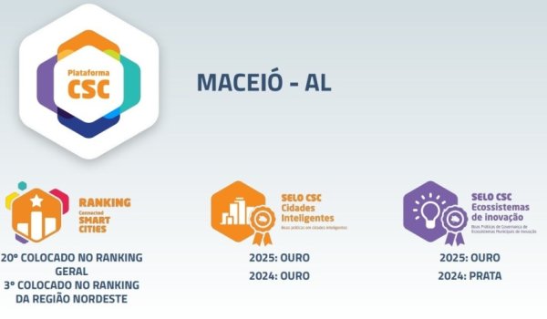 Maceió alcançou a 20ª colocação no ranking nacional do Connected Smart Cities e a 3ª posição no Nordeste, resultado da atuação técnica do Instituto de Pesquisa, Planejamento e Licenciamento Urbano e Ambiental (Iplam) na estruturação de políticas públicas baseadas em dados. O desempenho inclui a conquista de selos ouro em 2025 e 2024 na categoria Cidades Inteligentes, além de ouro em 2025 e prata em 2024 em Ecossistemas de Inovação.