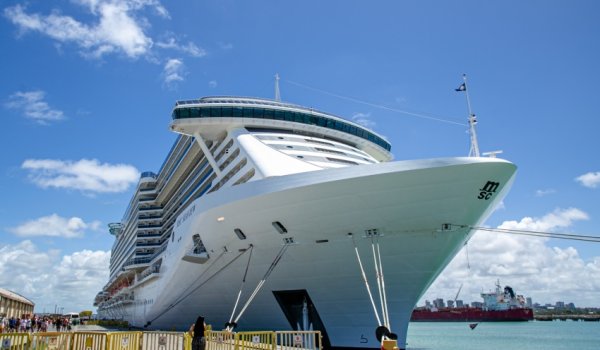 A embarcação da MSC veio de Salvador e segue viagem até o Porto de Santos, no litoral de São Paulo.