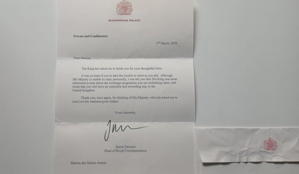 A estudante não esconde a alegria pelo retorno personalizado. “Eu já tinha escrito uma carta para a família real antes, em 2024. Então, no final de 2025, resolvi que enviaria mais cartas. Eu queria receber algo que não fosse uma resposta padrão de cartão, então decidi escrever sobre o 'Daqui pro Mundo', já que eu estava decidida a participar. Além disso, era um tema que tinha a ver com a Inglaterra, então achei que seria legal compartilhar isso na carta. Eu fiquei bem feliz, ainda mais porque era uma carta de verdade e não um cartão resposta”, contou.