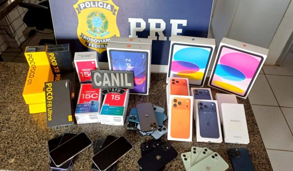 A carga irregular incluiu 36 aparelhos, entre smartphones e tablets de marcas variadas, e outros seis aparelhos aparentemente recondicionados; 48 itens entre fones de ouvido e microfones e centenas de peças, películas protetoras de tela e traseira de marcas e modelos diversos. Todo o material foi contabilizado e conduzido à Receita Federal pela equipe da PRF.